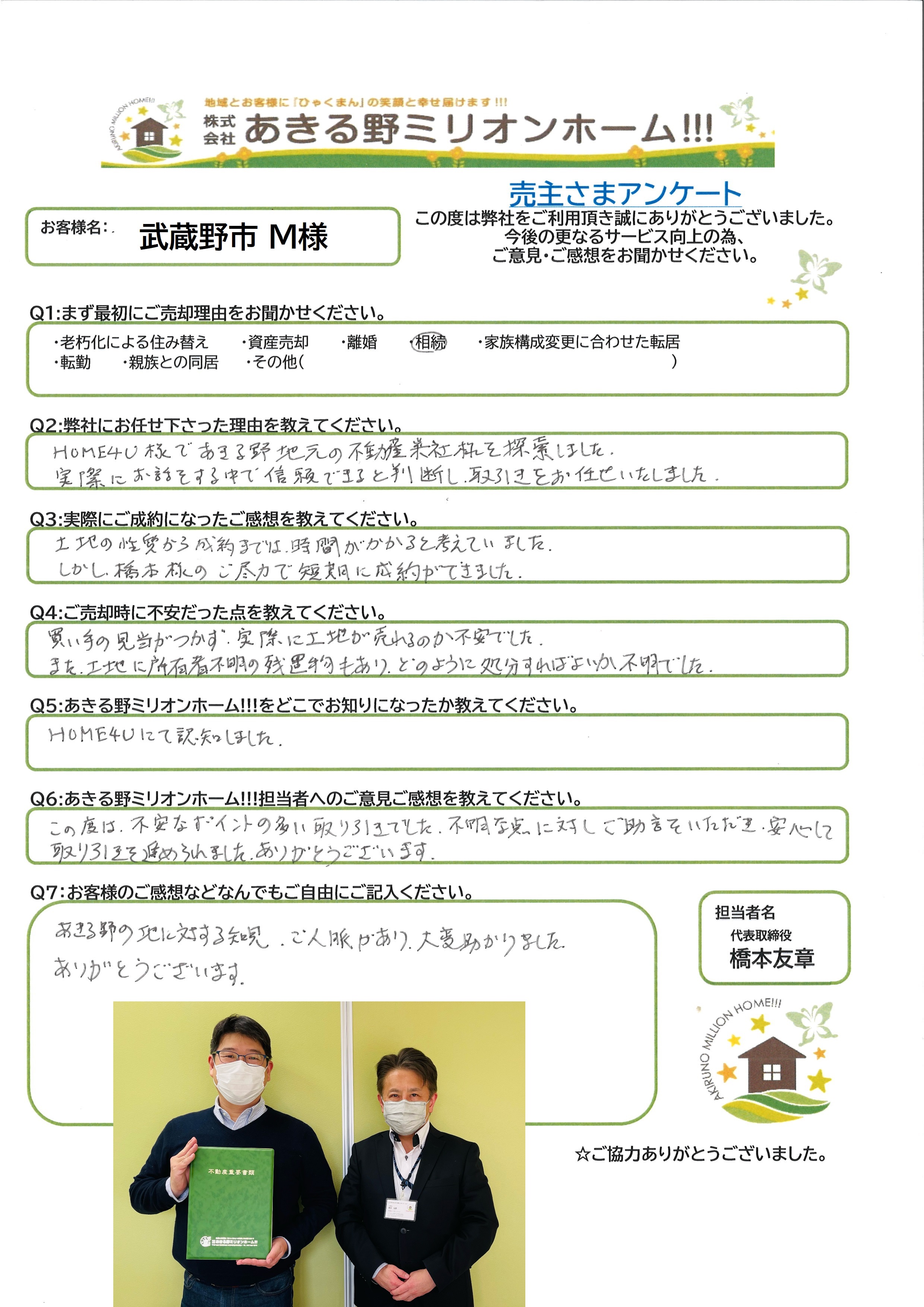 しかし、橋本様のご尽力で短期に成約ができました。