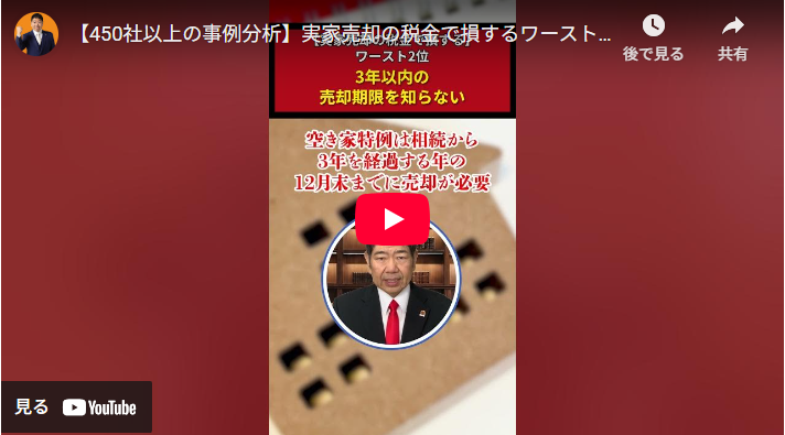【動画】【450社以上の事例分析】実家売却の税金で損するワースト3