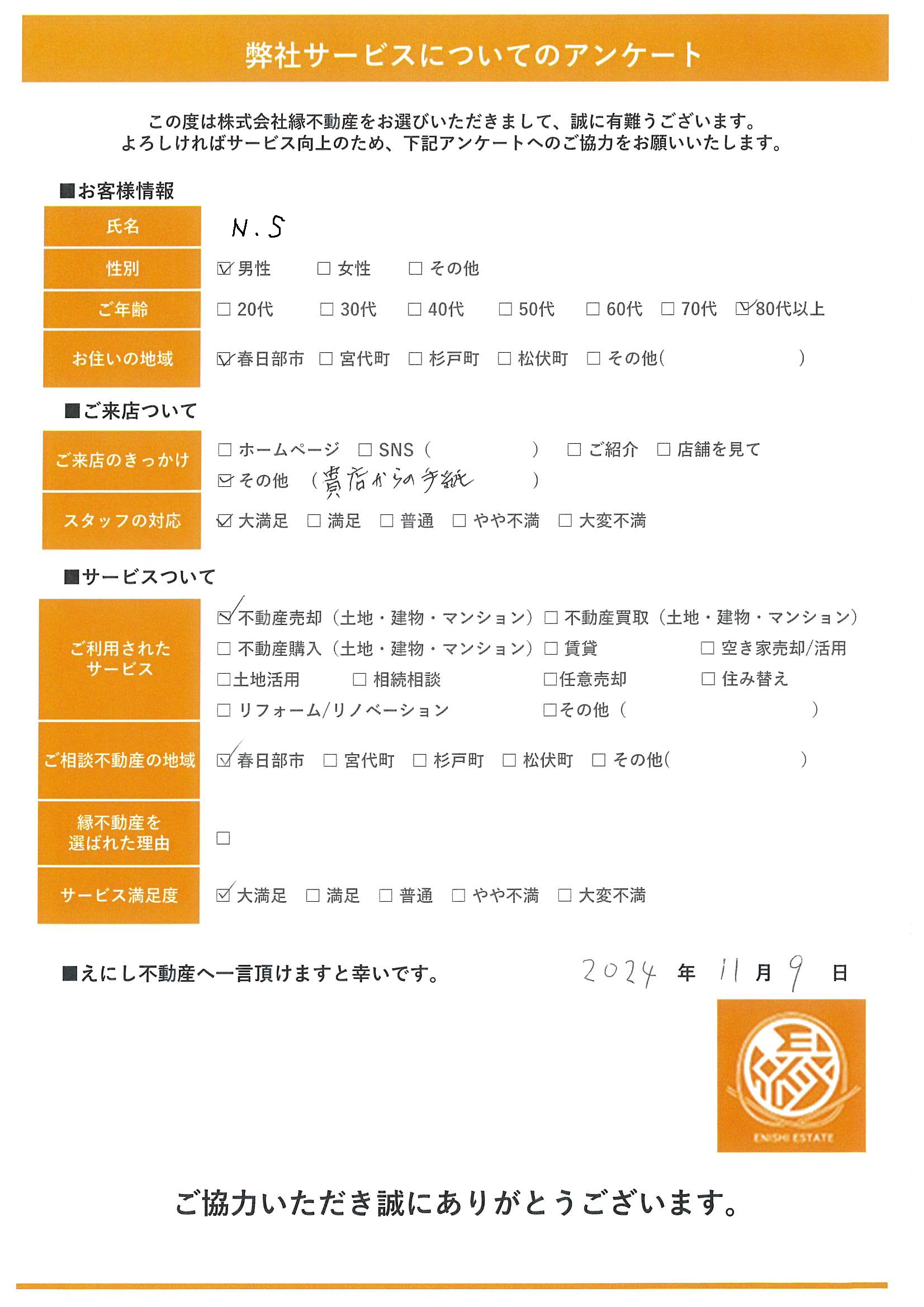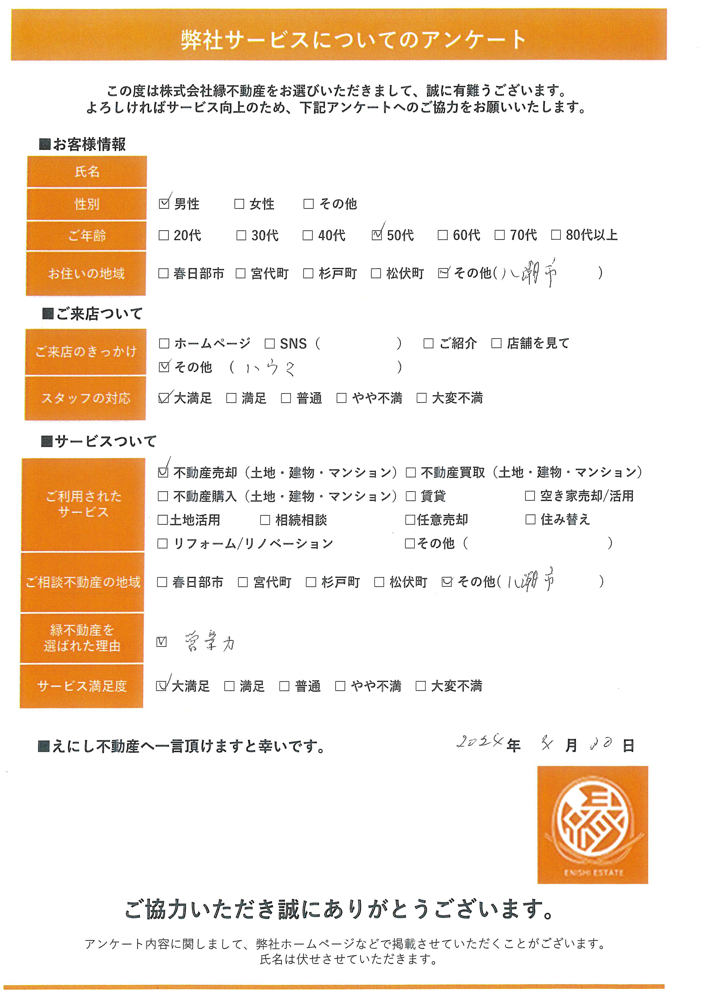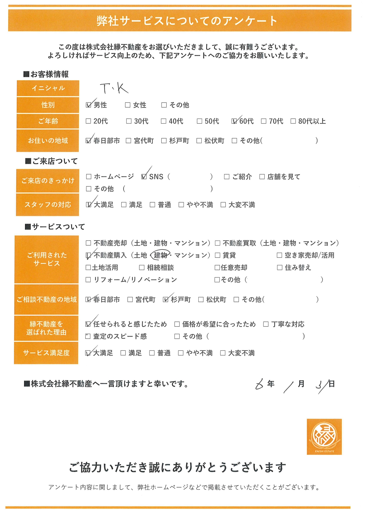この度は株式会社縁不動産をお選びいただきまして、誠に有難うございます。