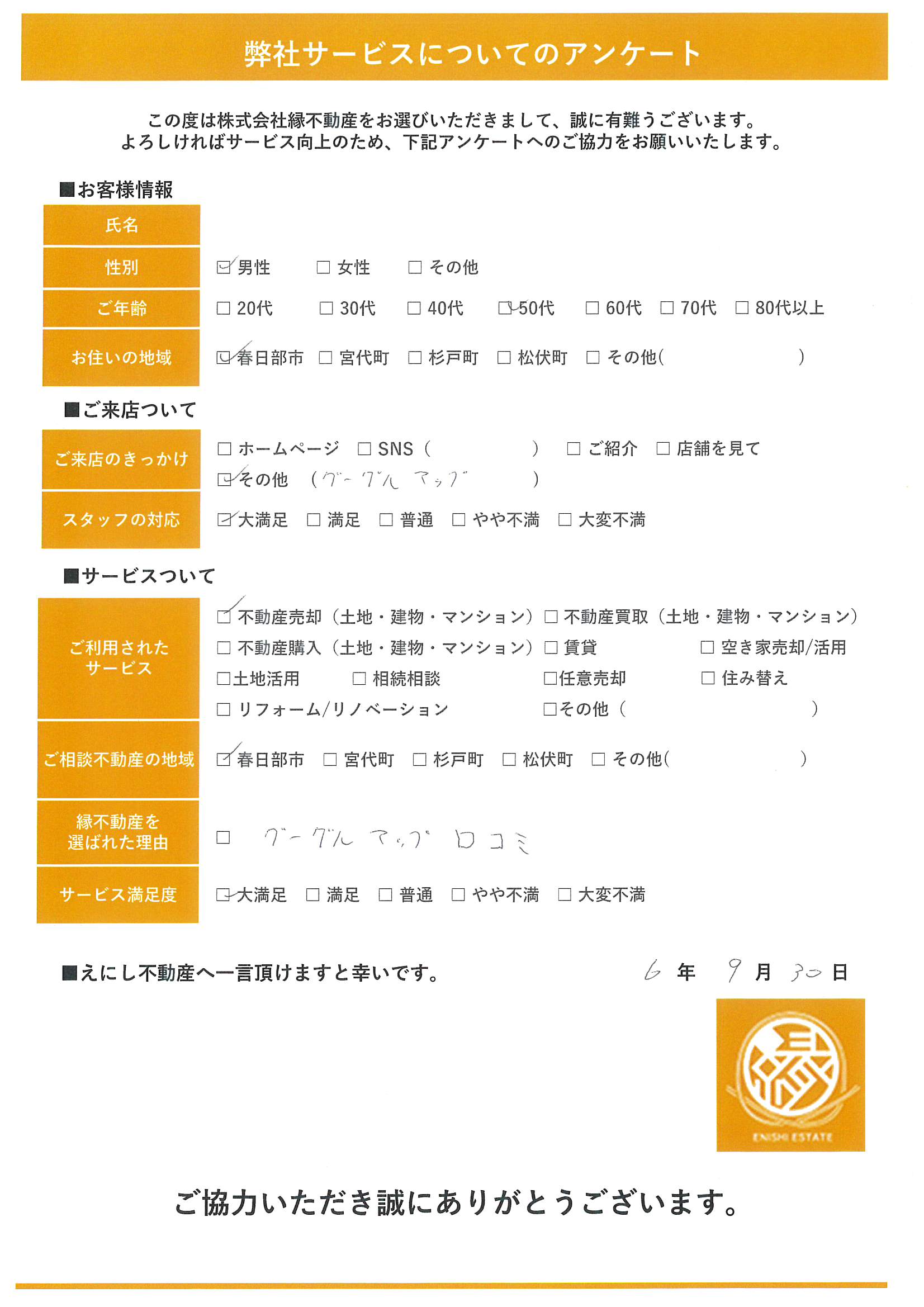 よろしければサ‐ビス向上のため、下記アンケートヘのご協力をお願いいたします。