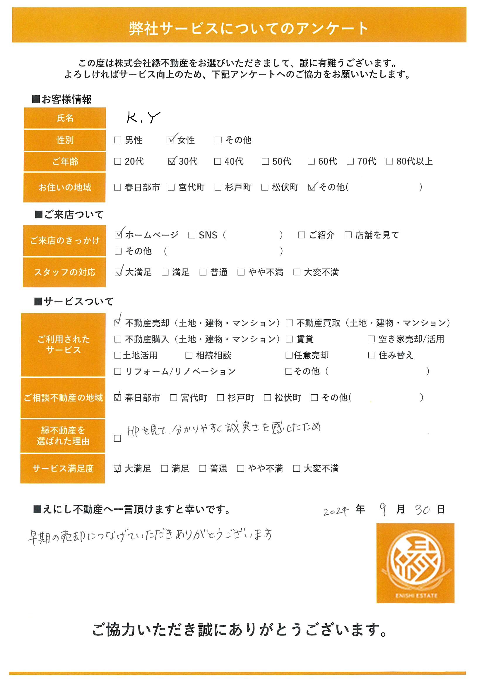 早期の売却につなげていただきありがとうございます。