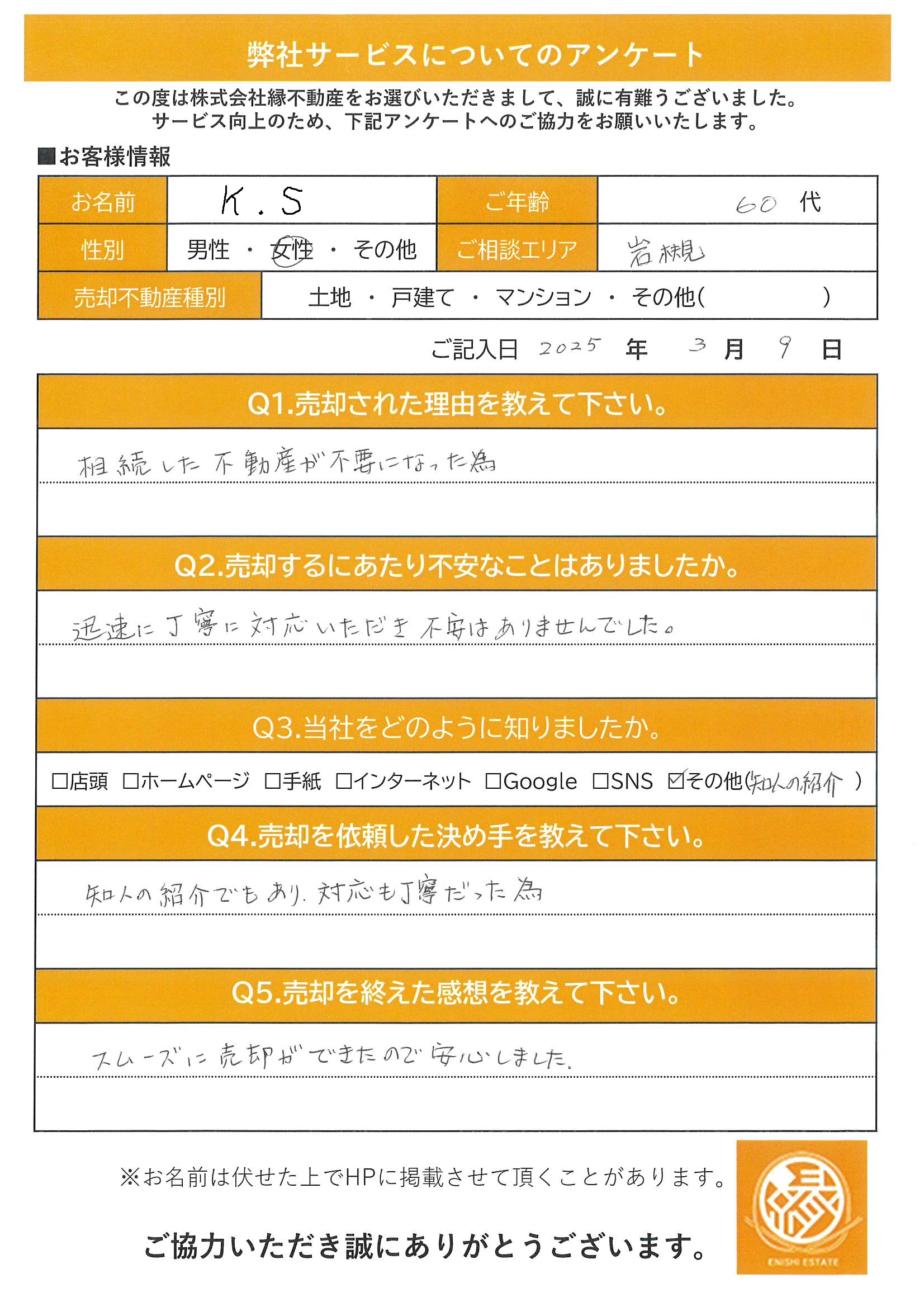 株式会社縁不動産へ一言いただけますと幸いです。