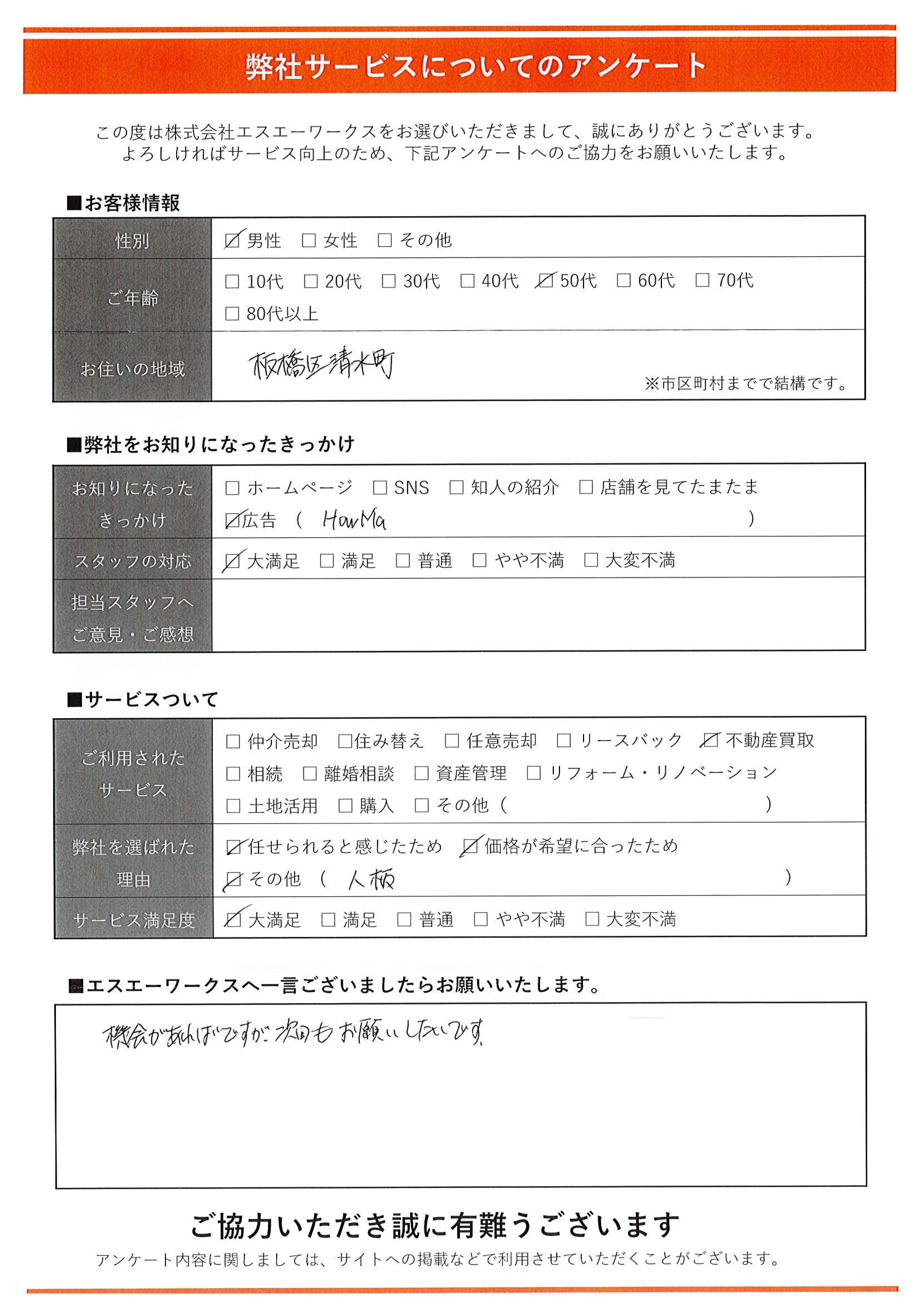 御社長の御人柄だと思いますが、商談中も常に私の気持ちに寄り添った姿勢に安心して任せられました。
