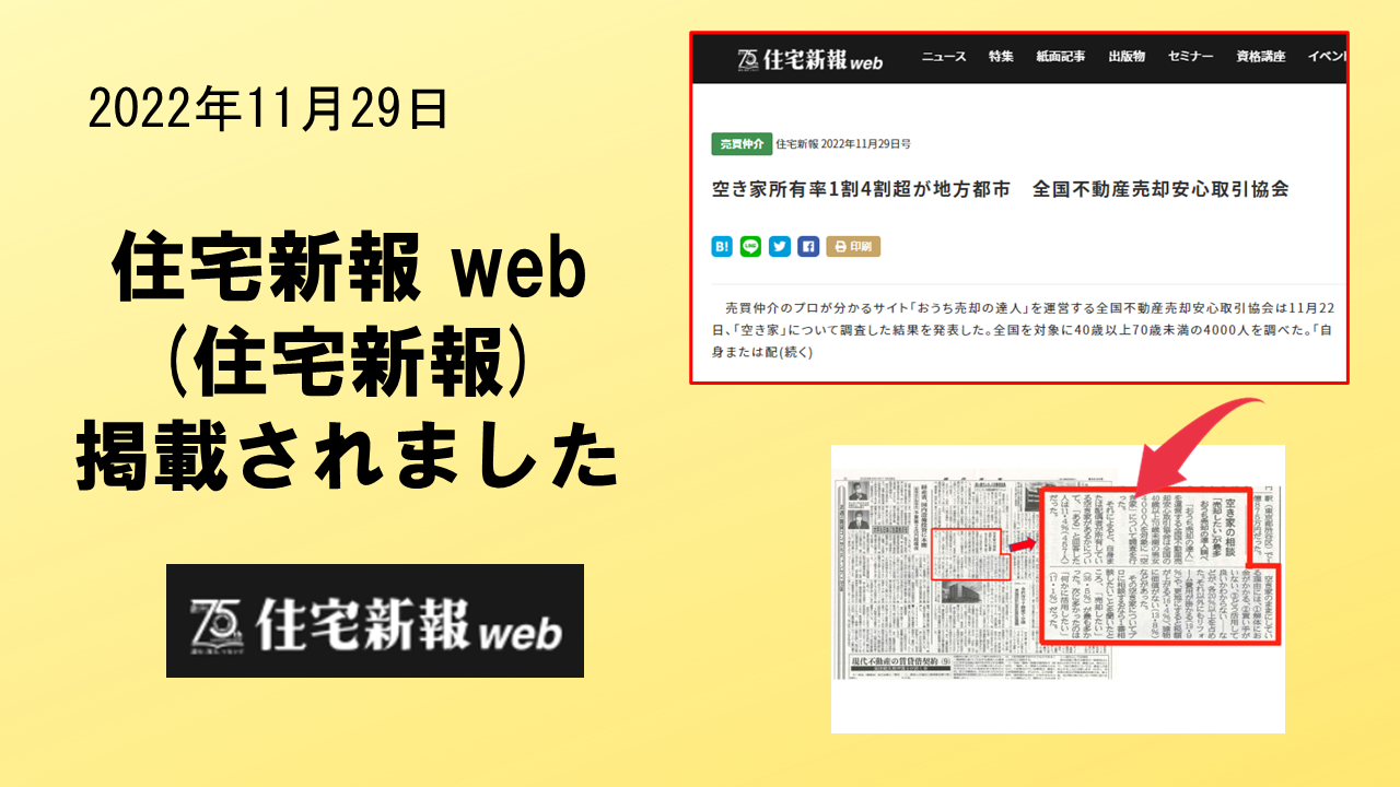 2022年11月29日 「住宅新報 web」に、掲載されました。 株式会社 住宅新報が運用する「住宅新報