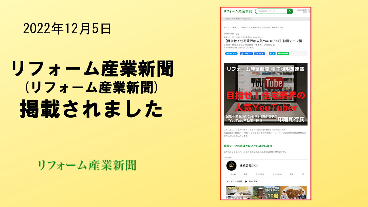 2022年12月5日 「リフォーム産業新聞」に、掲載されました。 株式会社リフォーム産業新聞社が運用する「