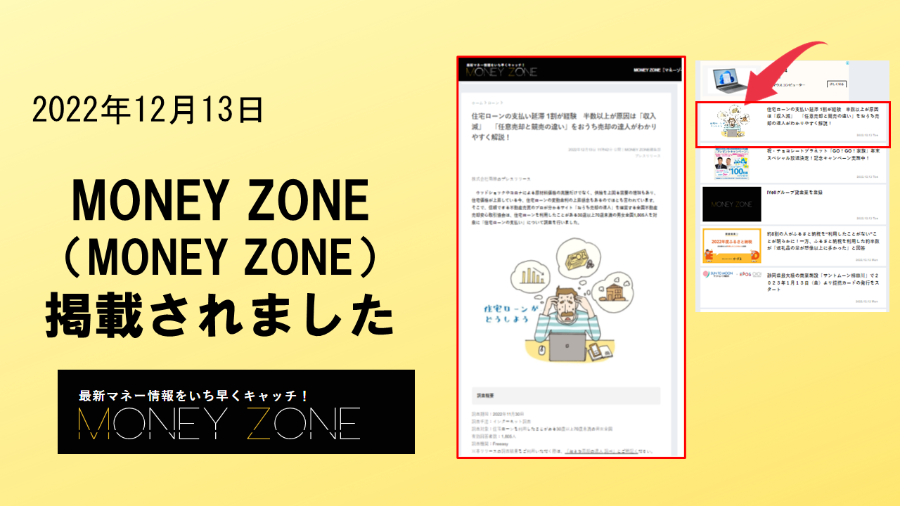 2022年12月13日 「MONEY ZONE」に、掲載されました。 MONEY ZONEが運用する「MONE