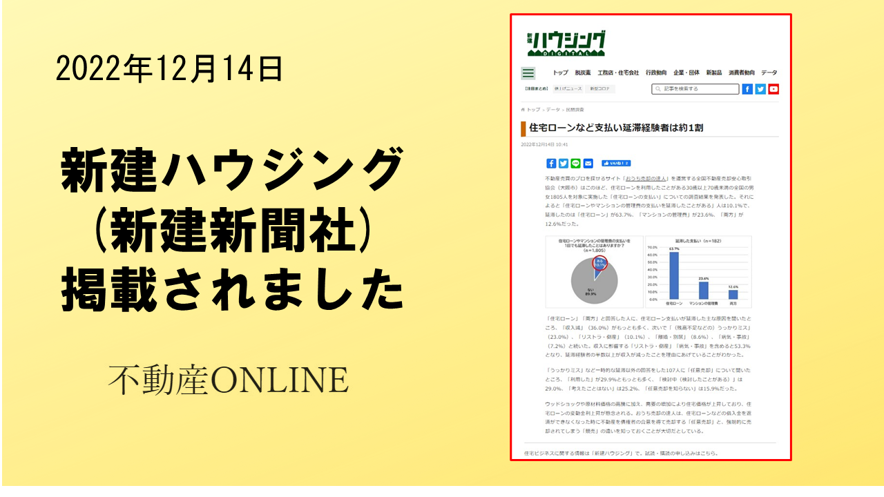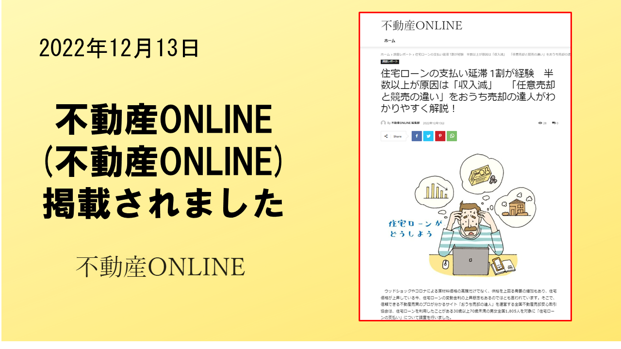 2022年12月13日 「不動産ONLINE」に、掲載されました。 不動産ONLINEが運用する 「不動産O