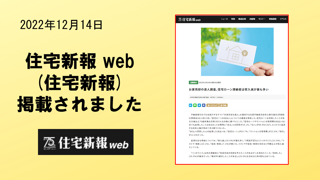 2022年12月14日 「住宅新報 web」に、掲載されました。 株式会社 住宅新報が運用する「住宅新報