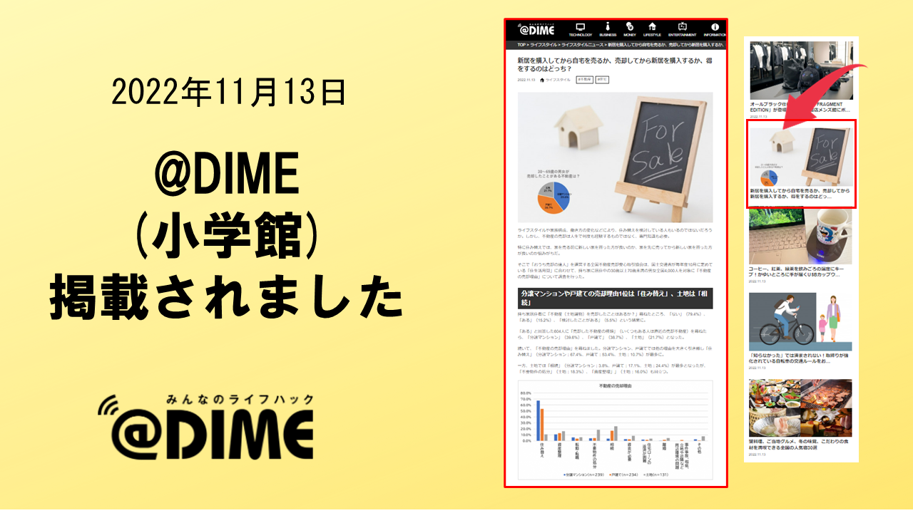 2022年11月13日 「@DIME」に、掲載されました。 株式会社小学館が運用する「@DIME」(