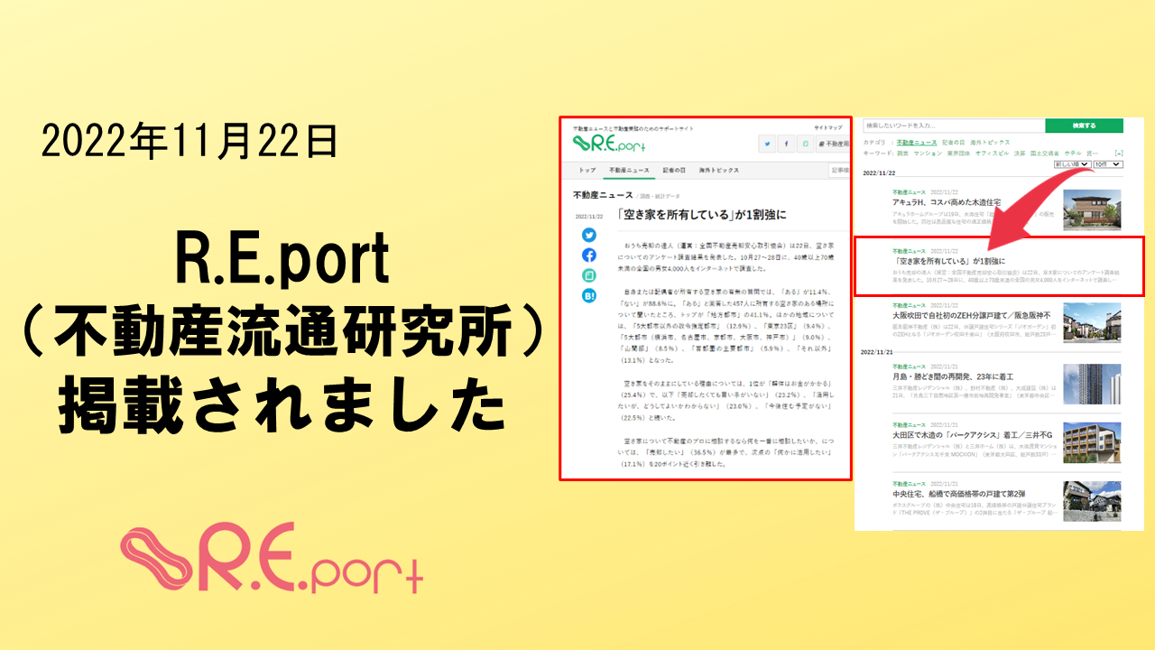 2022年11月22日 「R.E.port」に掲載されました。 株式会社不動産流通研究所が運用する 「R