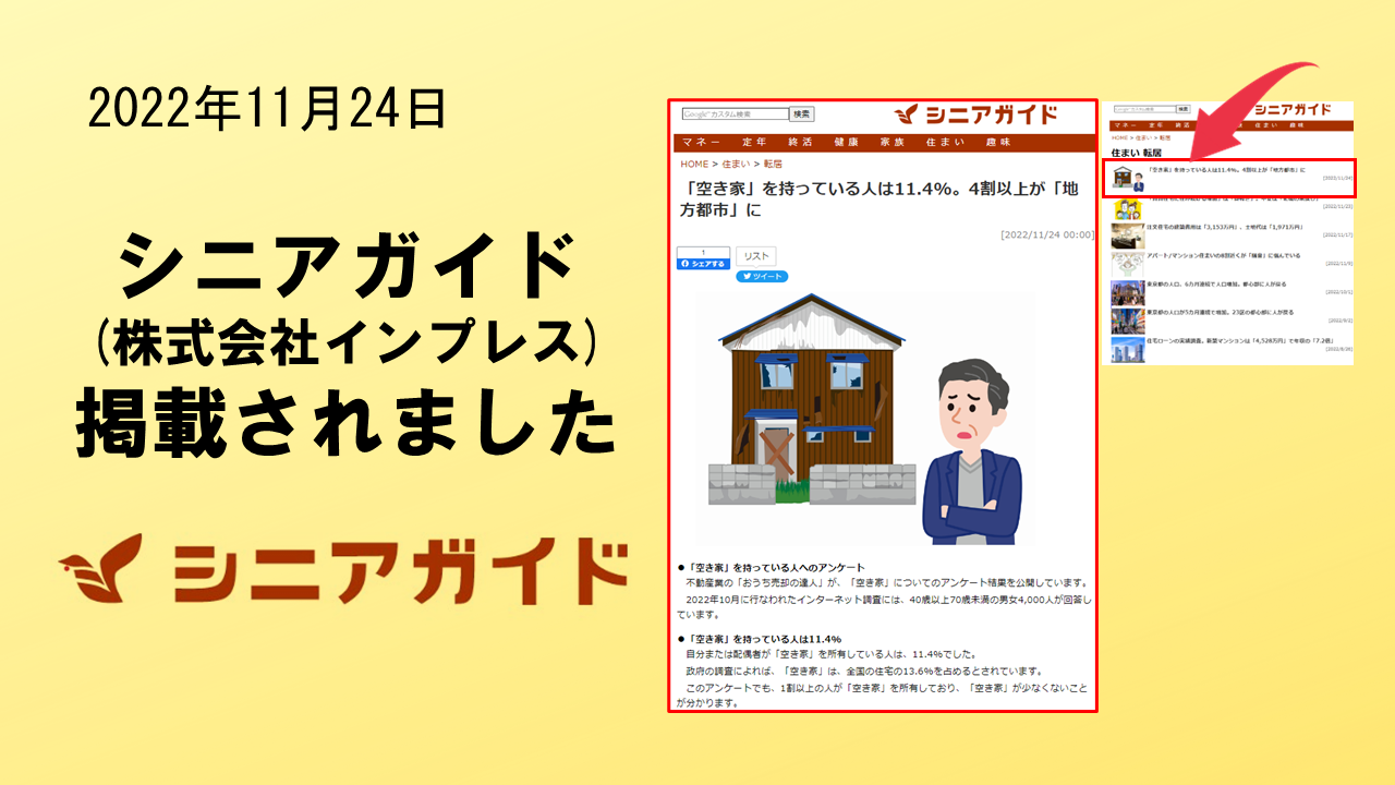 2022年11月24日 「シニアガイド」に掲載されました。 株式会社インプレスが運用する 「シニアガ
