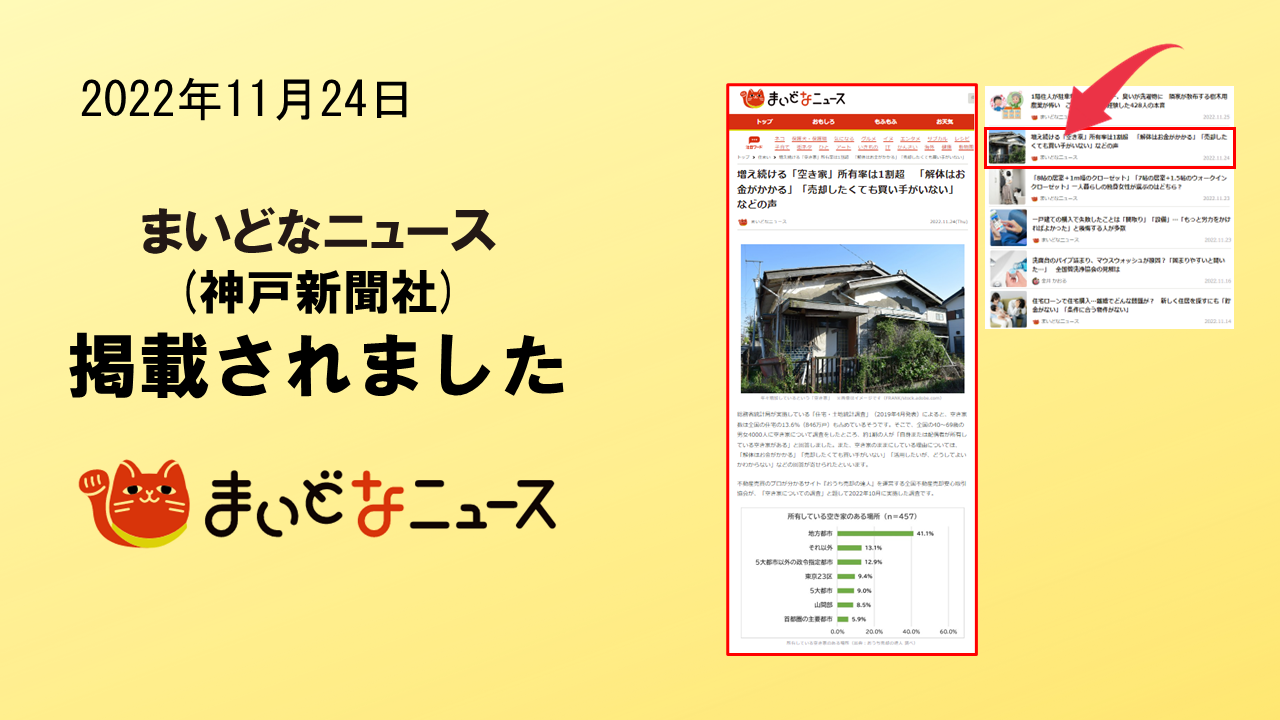 2022年11月24日 「まいどなニュース」に、掲載されました。 神戸新聞社が運用する「まいどなニュース」