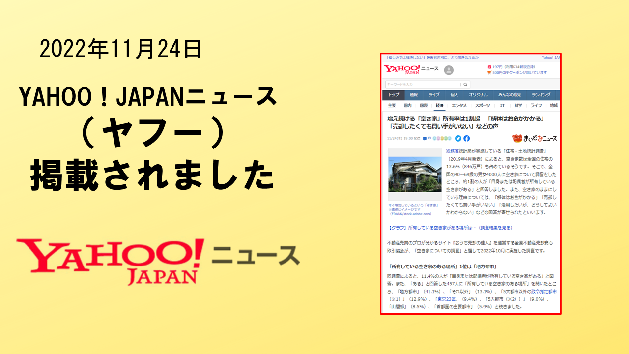 2022年11月24日 「YAHOO!JAPANニュース」に、掲載されました。 ヤフー株式会社が運用する「YAHOO!J