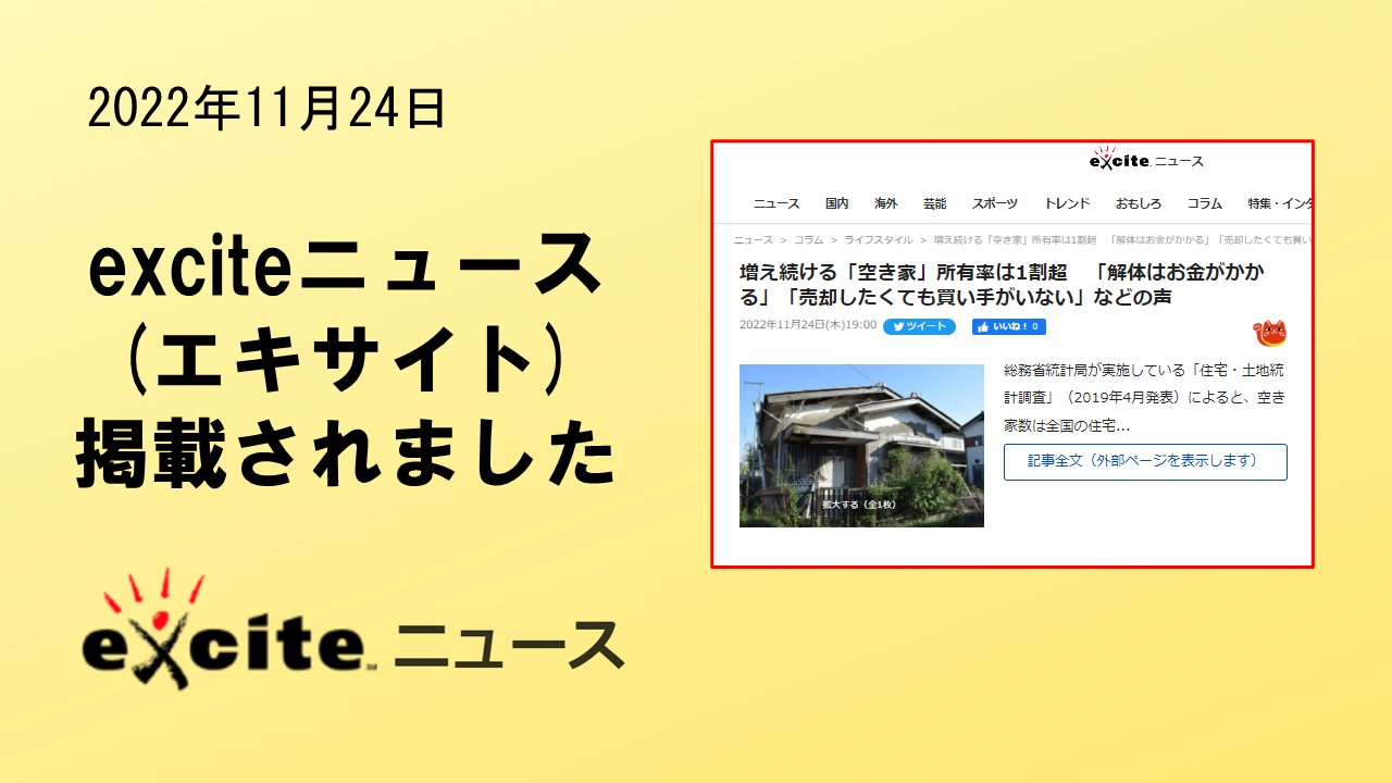 2022年11月24日 「excite ニュース」に、掲載されました。 エキサイト株式会社が運用する「excit