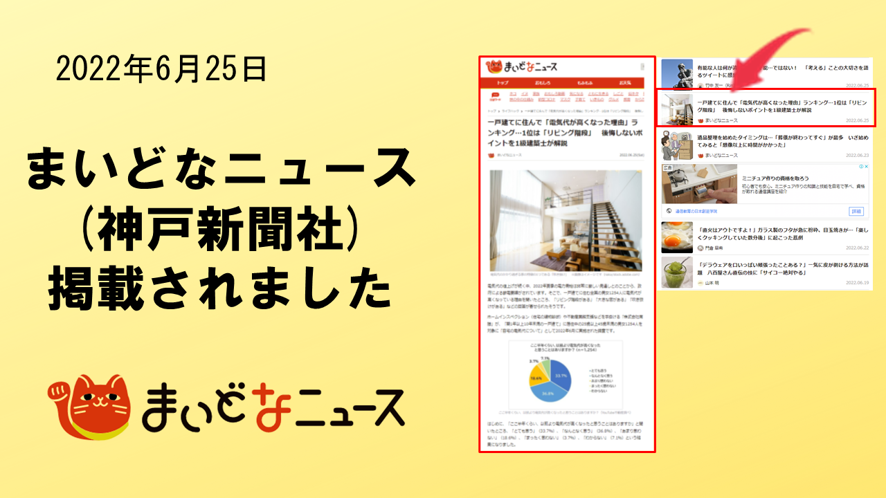 2022年6月25日「まいどなニュース」に、掲載されました。 株式会社 神戸新聞社が運用する「まいどな