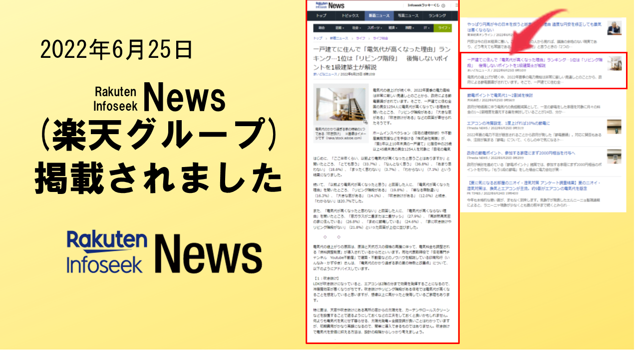 2022年6月25日「Rakuten Infoseek News」に、掲載されました。 楽天グループ株式会社が運用する「Raku