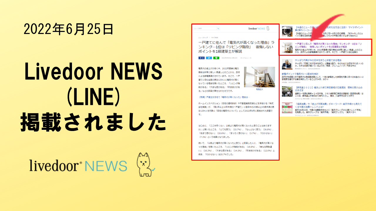 2022年6月25日「livedoor NEWS」に、掲載されました。 LINE株式会社が運用する 「lived