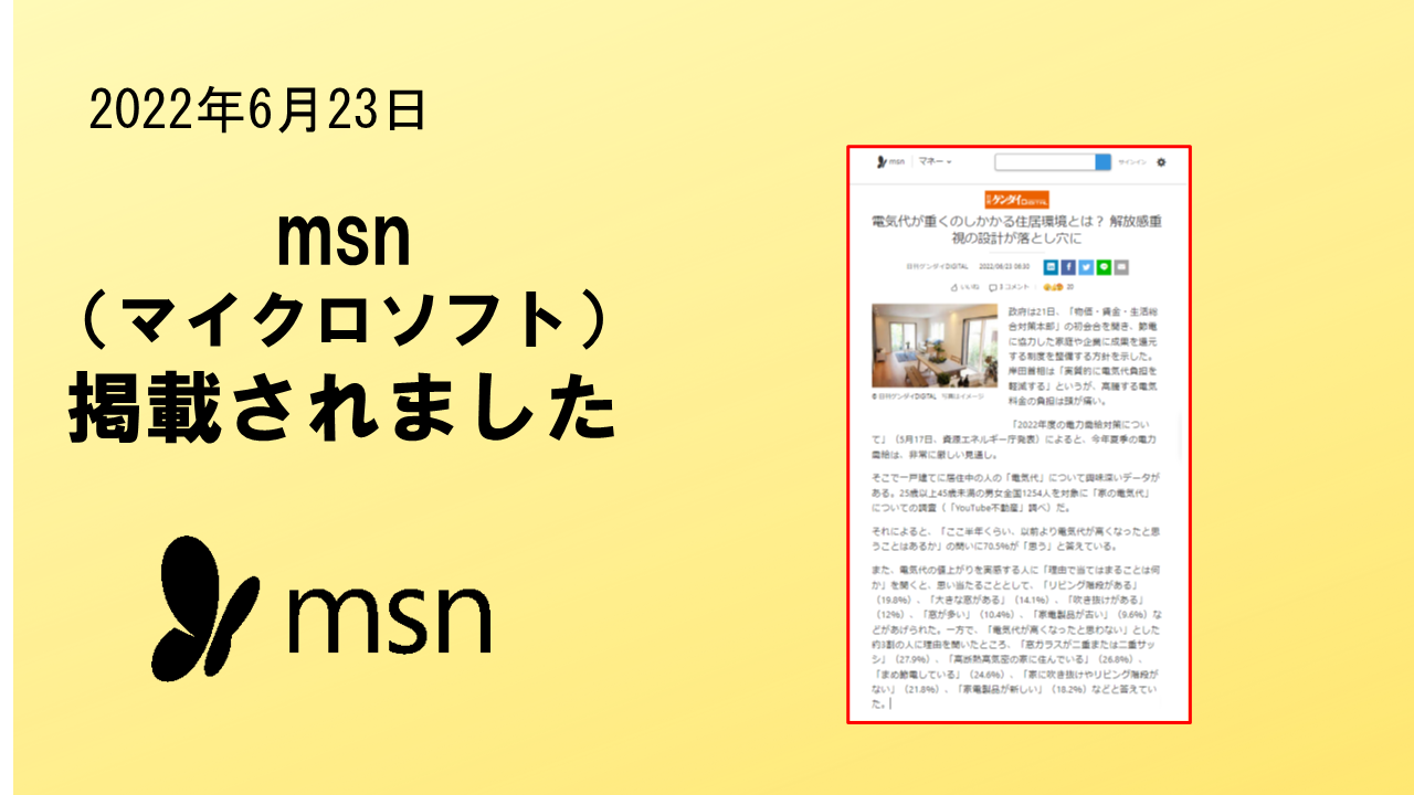 2022年6月23日「msn」に、掲載されました。 マイクロソフト株式会社が運用する「msn
