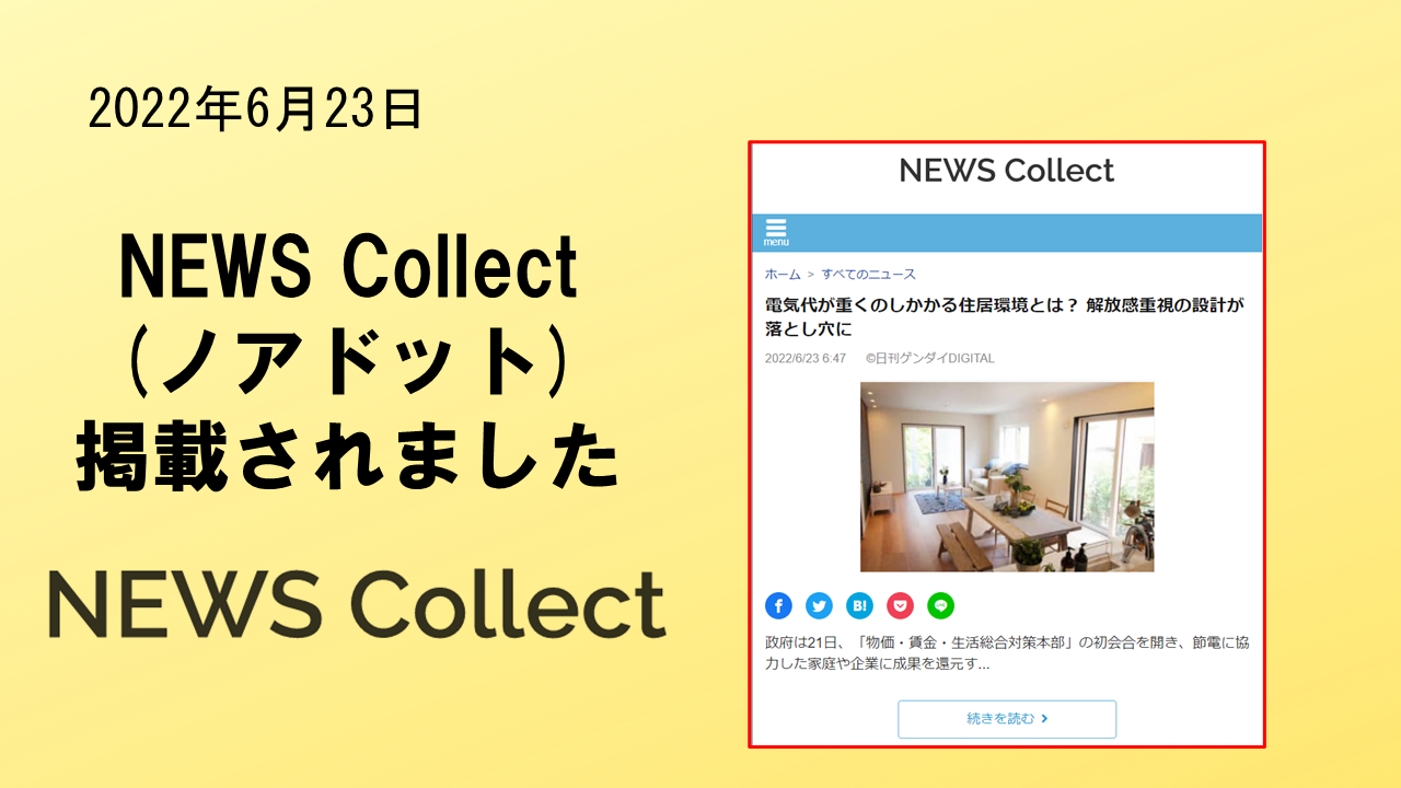 2022年6月23日「NEWS Collect」に、掲載されました。 ノアドット株式会社が運用する「NEWS