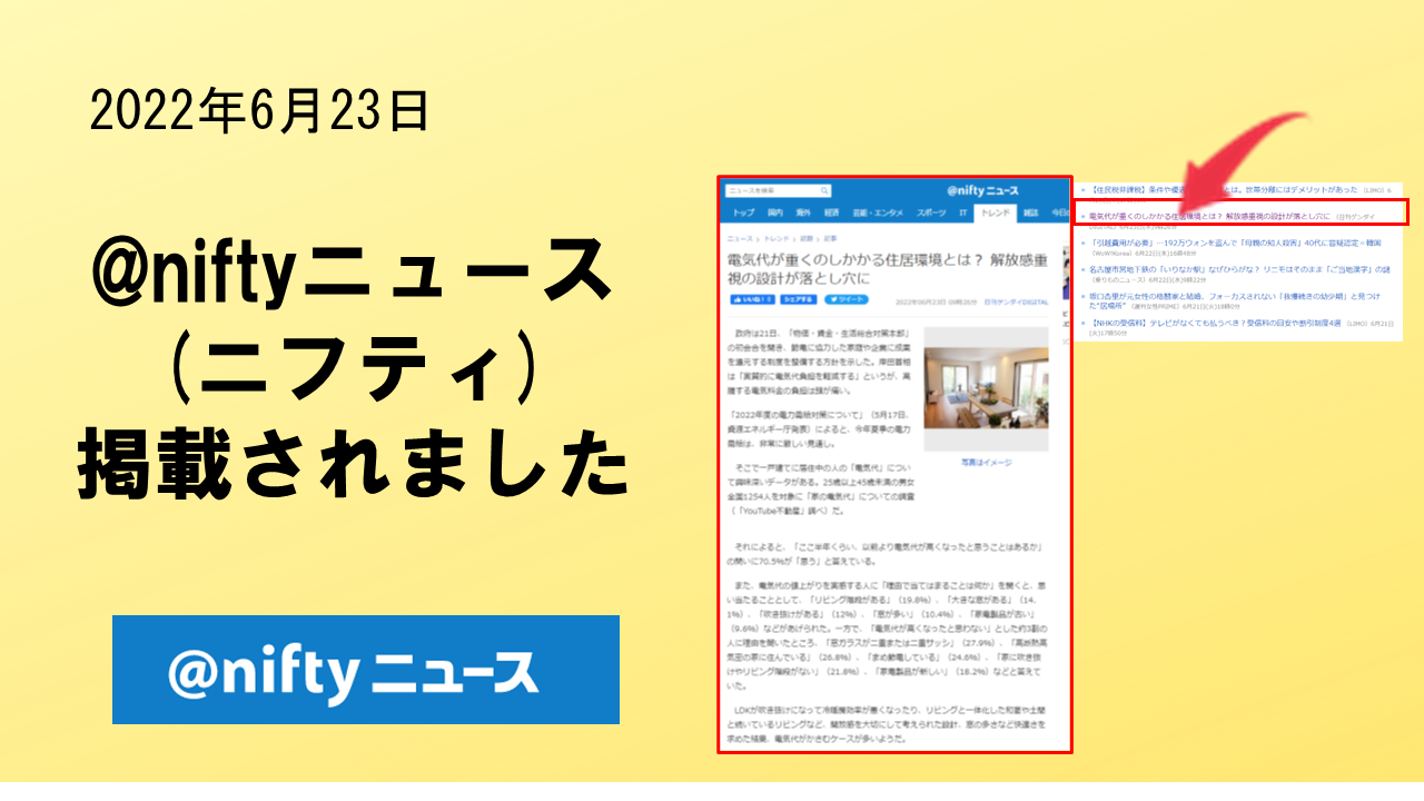 2022年6月23日「@niftyニュース」に、掲載されました。 ニフティ株式会社が運用する「@nifty