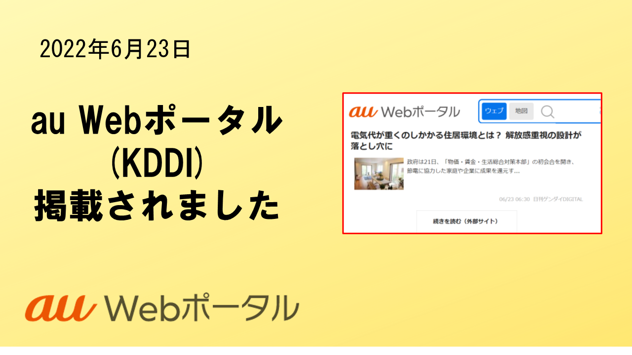 2022年6月23日「au Webポータル」に、掲載されました。 KDDI株式会社が運用する「au Web