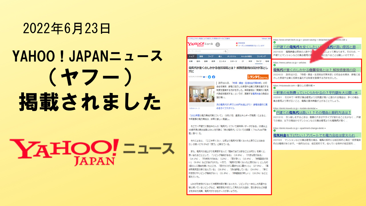 2022年6月23日「YAHOO!JAPANニュース」に、掲載されました。 ヤフー株式会社が運用する「YAHOO!J