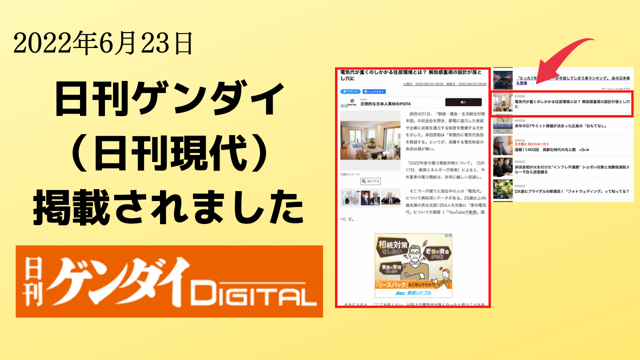 2022年6月23日「日刊ゲンダイ」に、掲載されました。 株式会社日刊現代が運用する「日刊ゲンダイ