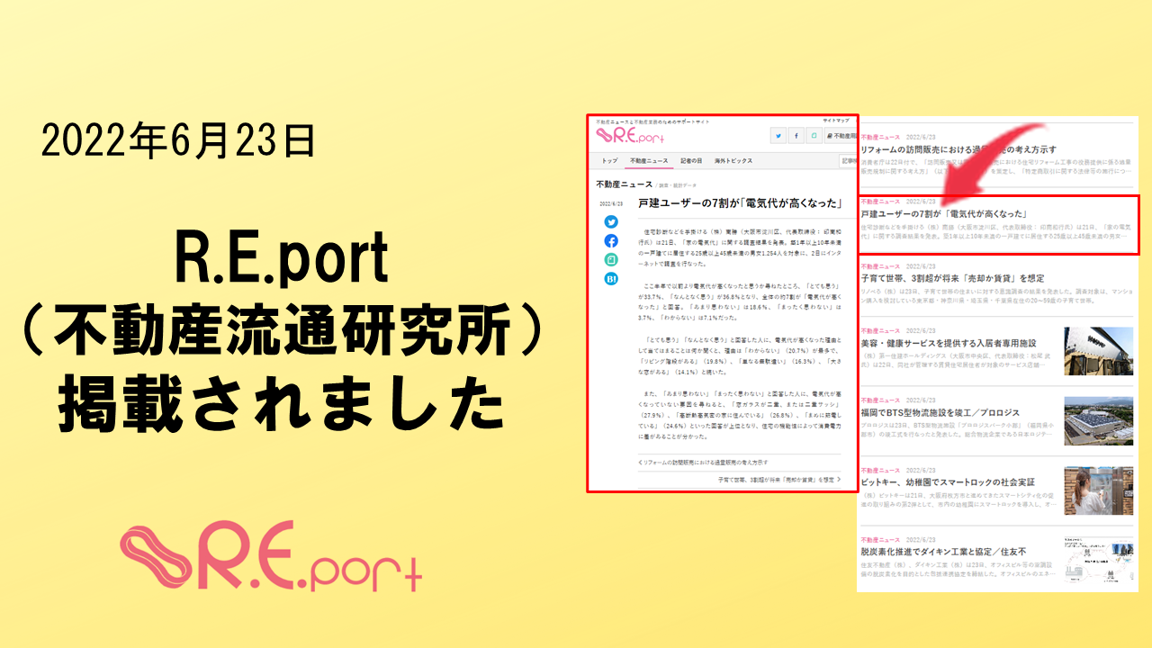 2022年6月23日「R.E.port」に、掲載されました。 株式会社不動産流通研究所が運用する 「R