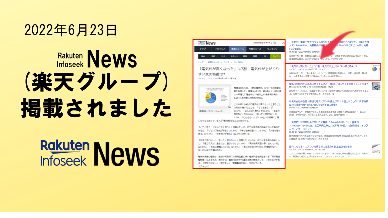 2022年6月23日「Rakuten Infoseek News」に、掲載されました。 楽天グループ株式会社が運用する 「Rak