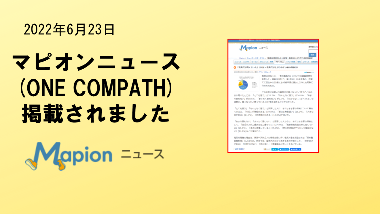 2022年6月23日「マピオンニュース」に、掲載されました。 株式会社ONE COMPATHが運用する