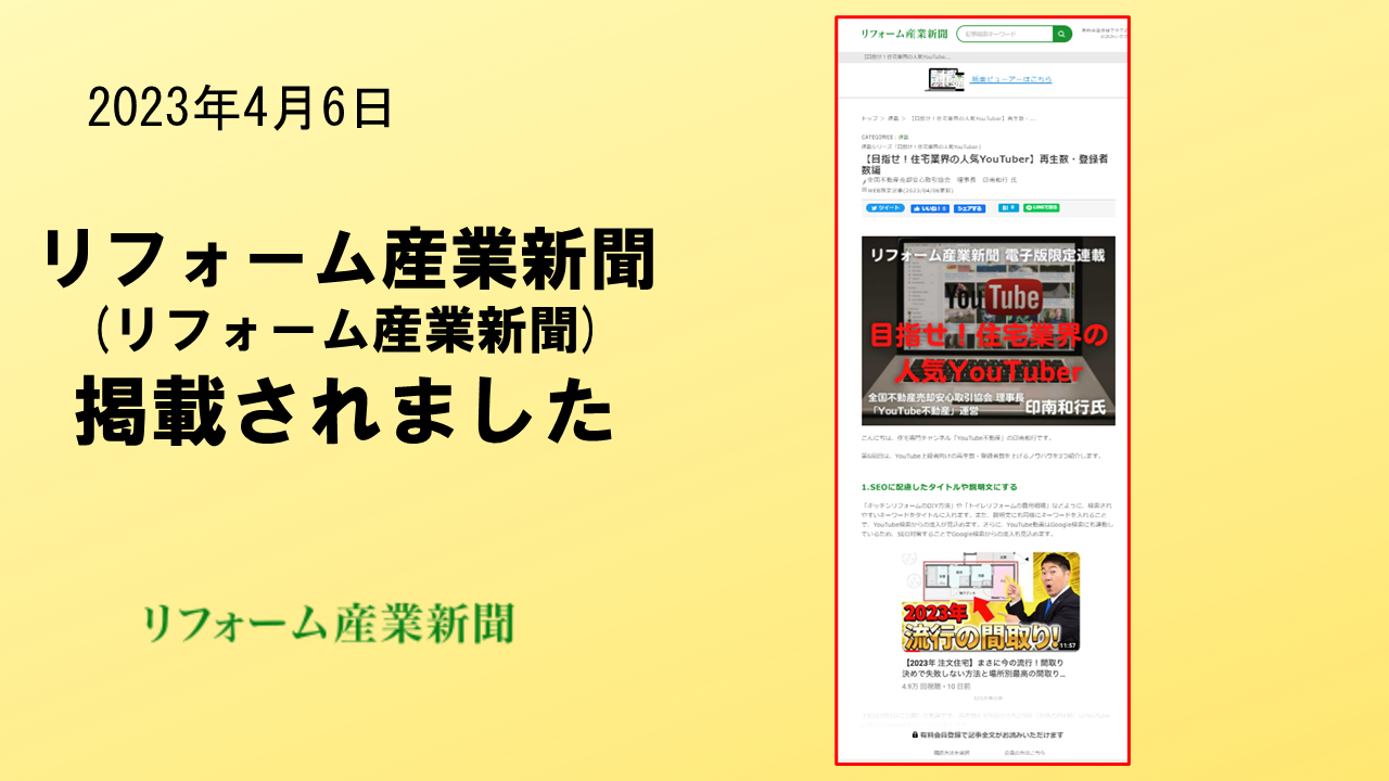 2023年4月6日 「リフォーム産業新聞」に、掲載されました。 株式会社リフォーム産業新聞社が運用する「