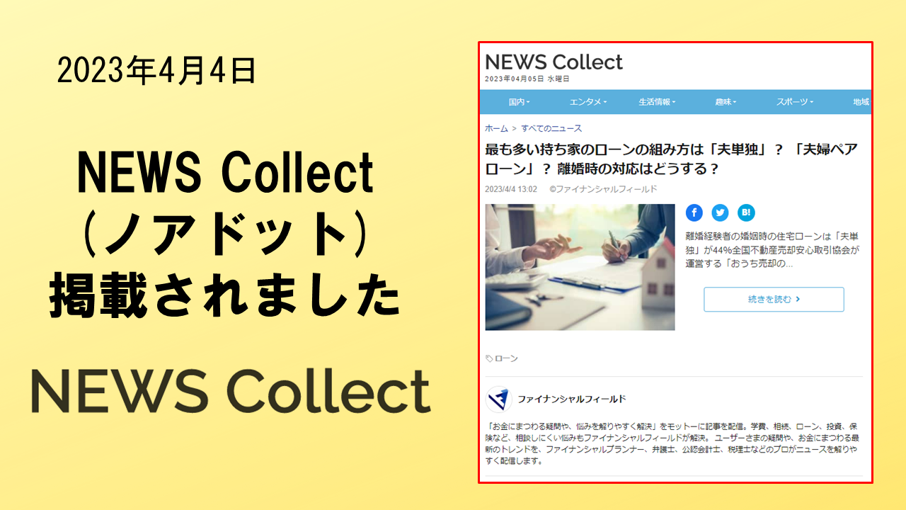 2023年4月4日「NEWS Collect」に、掲載されました。 ノアドット株式会社のが運用する「NEWS