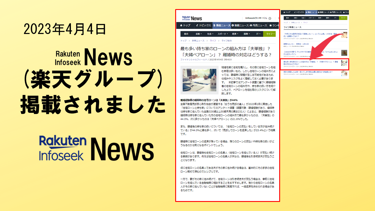 2023年4月4日 「Rakuten Infoseek News」に、掲載されました。 楽天グループ株式会社が運用する 「Rak