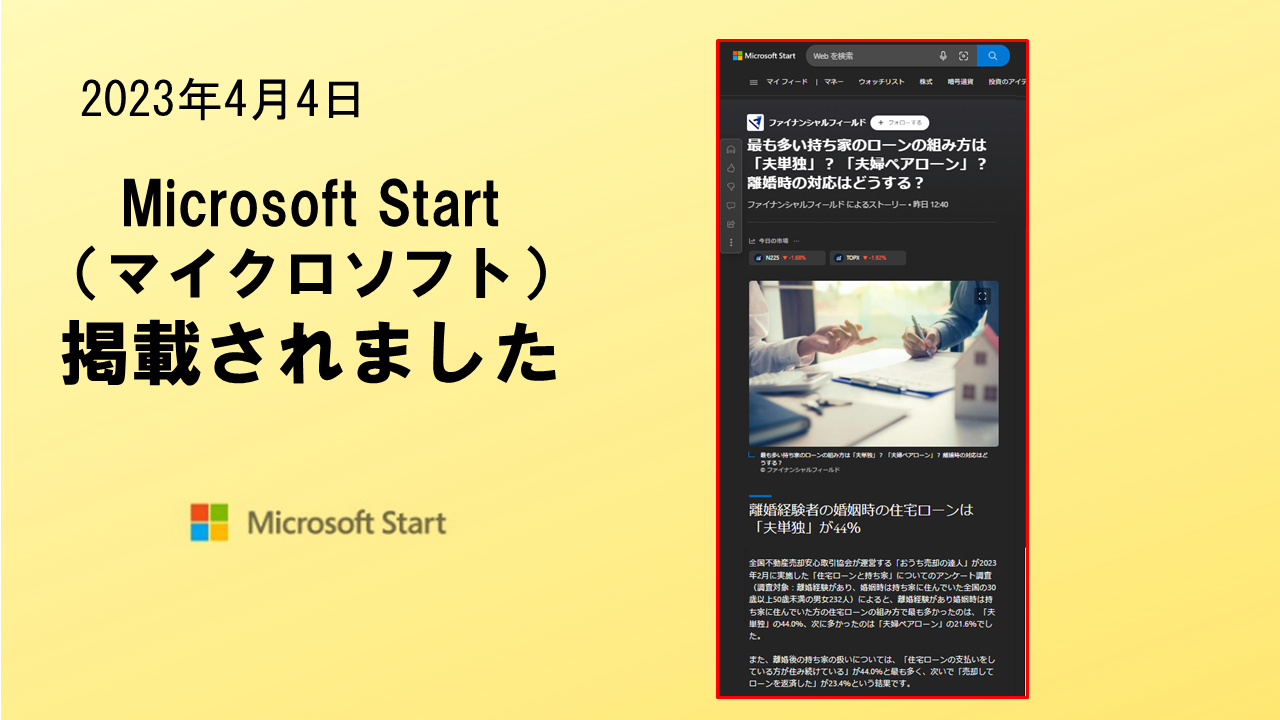2023年4月4日「Microsoft Start」に、掲載されました。 マイクロソフトが運用する「Microso