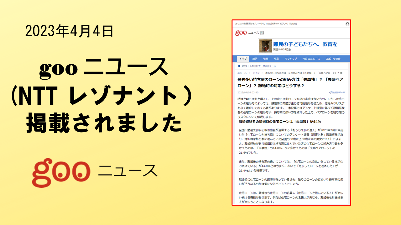 2023年4月4日 「goo ニュース」に、掲載されました。 NTTレゾナント株式会社が運用する「go