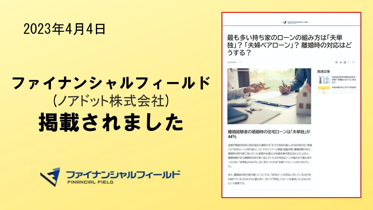 2023年4月4日 「ファイナンシャルフィールド」に、掲載されました。 ノアドット株式会社のが運用する「ファイナ