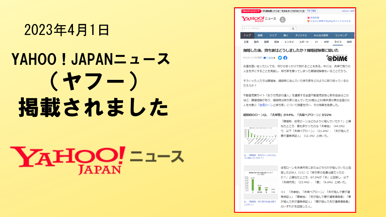 2023年4月1日 「YAHOO!JAPANニュース」に、掲載されました。 ヤフー株式会社が運用する「YAHOO!J