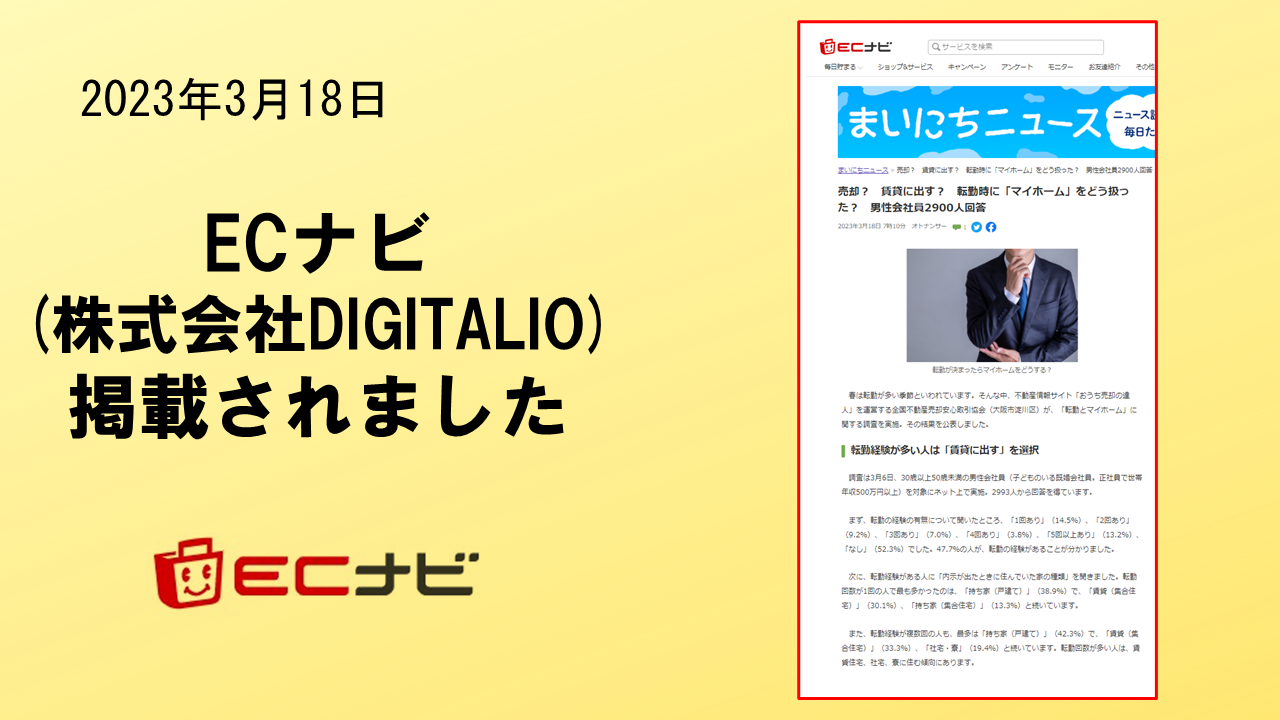 2023年3月18日 「ECナビ」に、掲載されました。 株式会社DIGITALIOが運用する「E