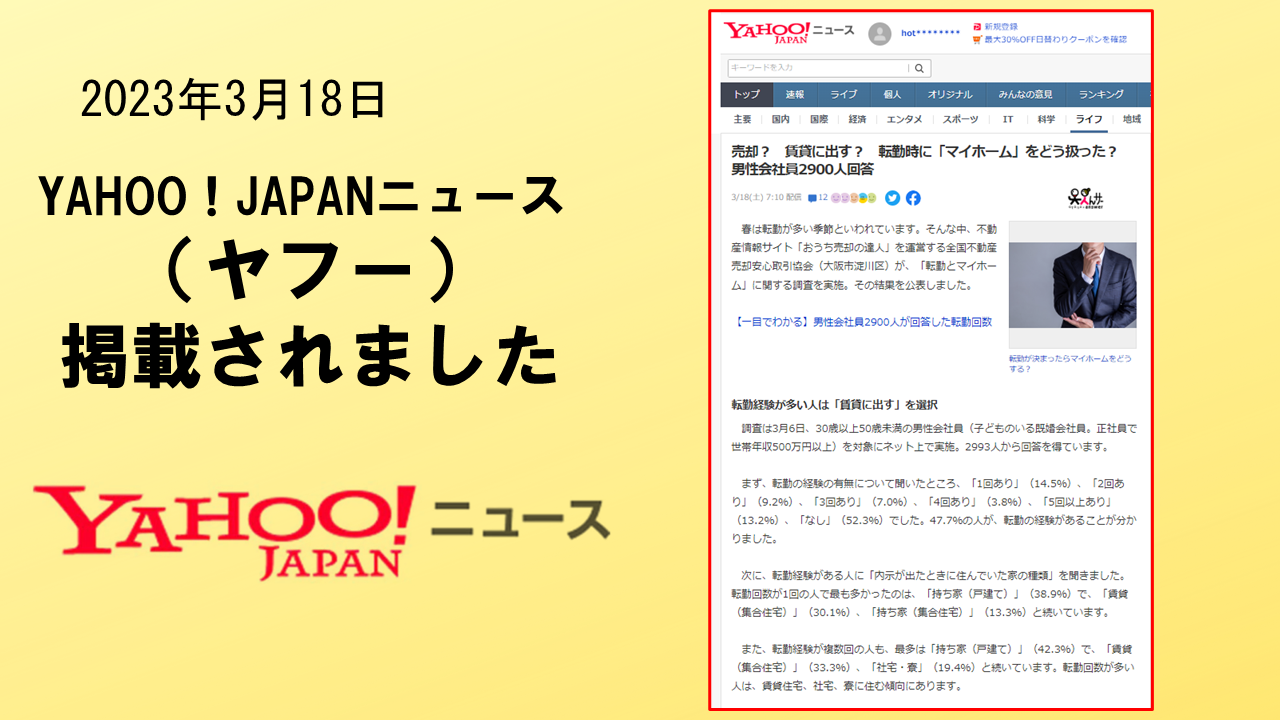 2023年3月18日 「YAHOO!JAPANニュース」に、掲載されました。 ヤフー株式会社が運用する「YAHOO!J