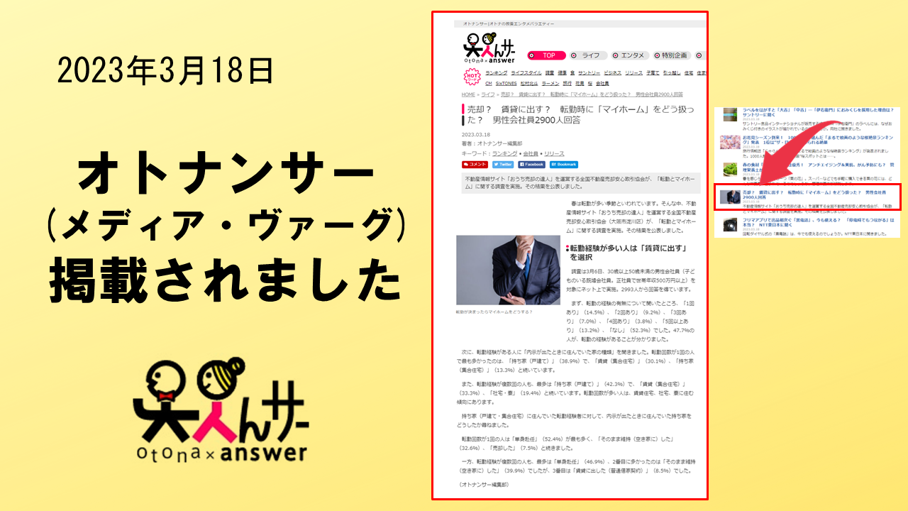 2023年3月18日 「オトナンサー」に、掲載されました。 株式会社メディア・ヴァーグが運用する「オ