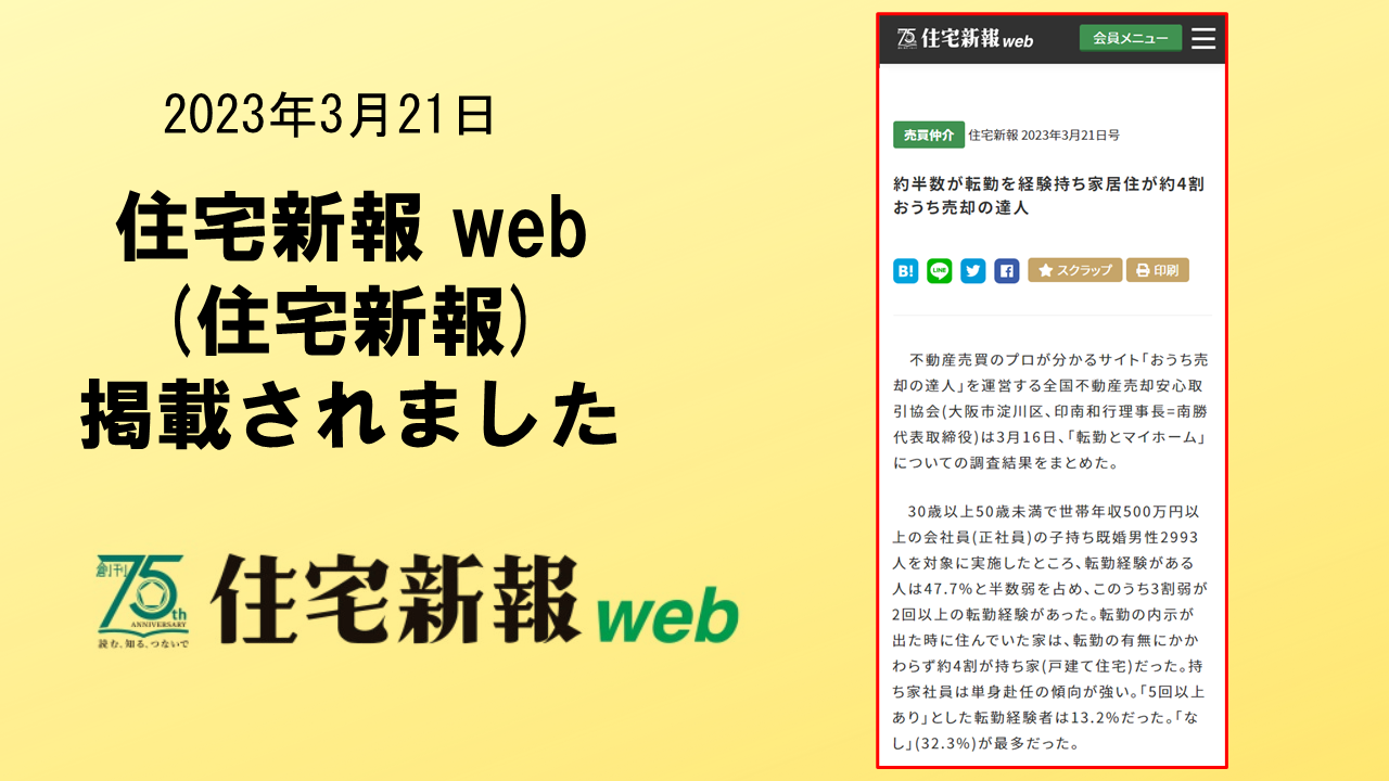 2023年3月21日 「住宅新報 web」に、掲載されました。 株式会社 住宅新報が運用する「住宅新報
