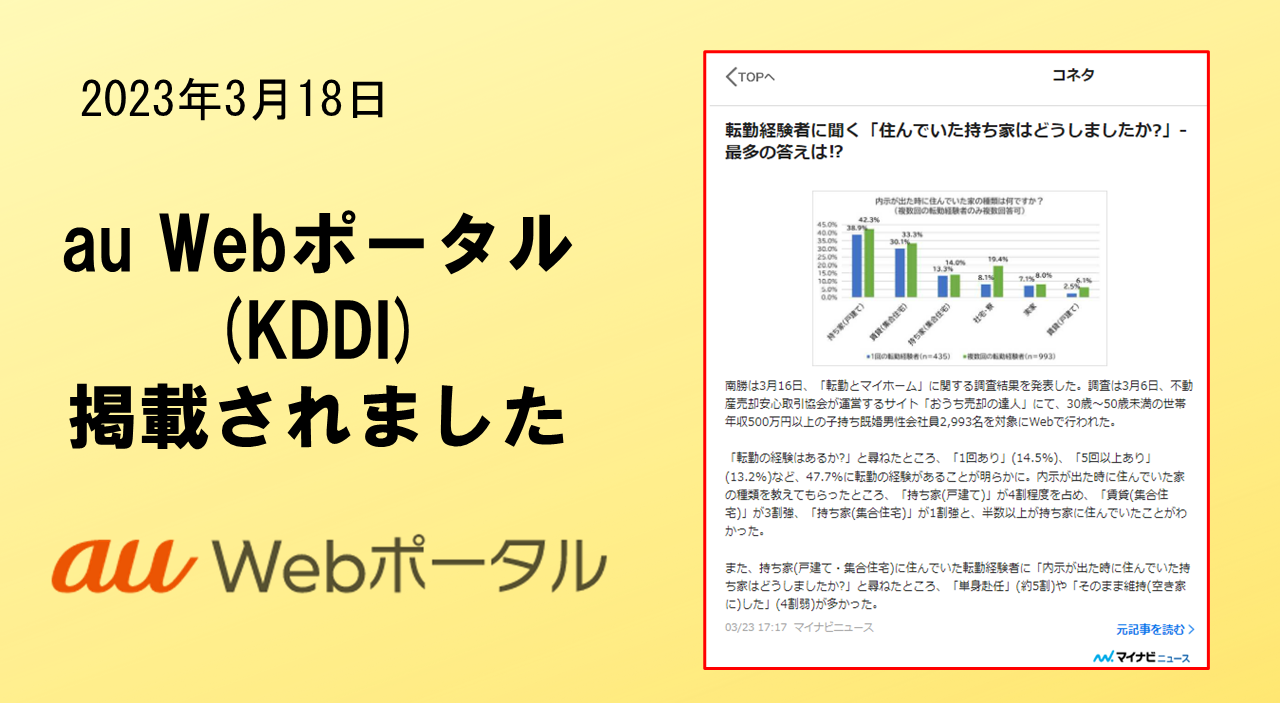 2023年3月23日 「au Webポータル」に、掲載されました。 KDDI株式会社が運用する「au Web