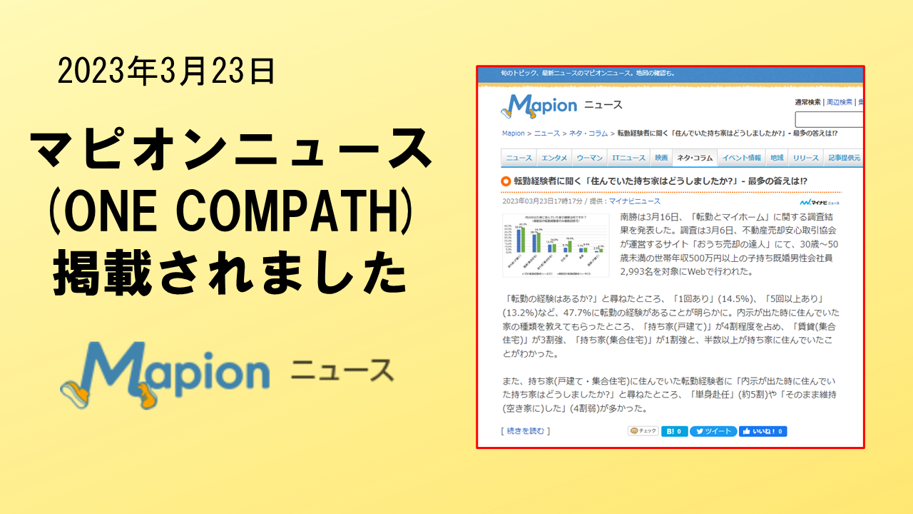 2023年3月23日「マピオンニュース」に、掲載されました。 株式会社ONE COMPATHが運用する