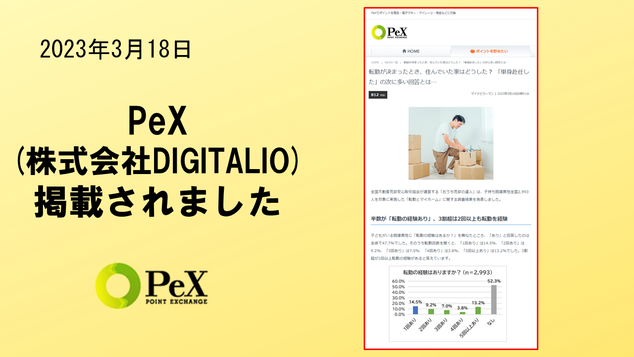 2023年3月18日 「PeX」に、掲載されました。 株式会社DIGITALIOが運用する「P
