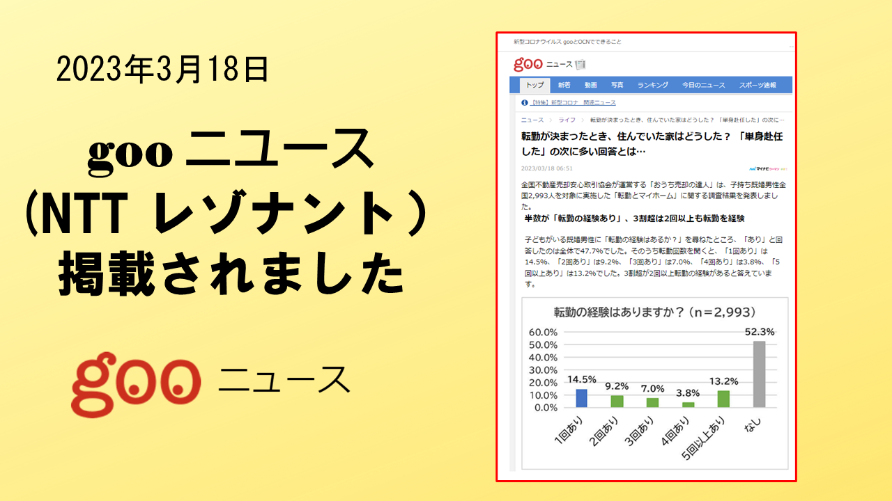 2023年3月18日 「goo ニュース」に、掲載されました。 NTTレゾナント株式会社が運用する「go