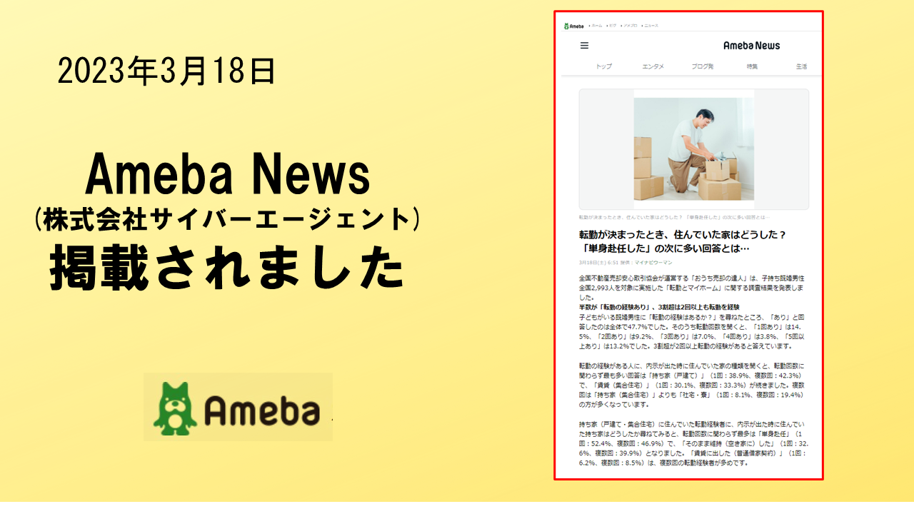 2023年3月18日 「Ameba News」に、掲載されました。 株式会社サイバーエージェントが運用する「