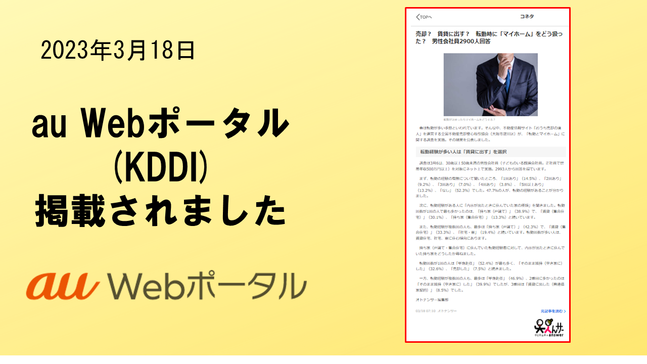 2023年3月18日 「au Webポータル」に、掲載されました。 KDDI株式会社が運用する「au Web