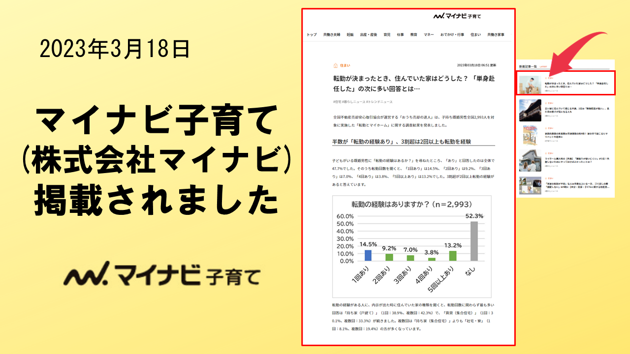 2023年3月18日 「マイナビ子育て」に、掲載されました。 株式会社マイナビが運用する「マイナビ子育